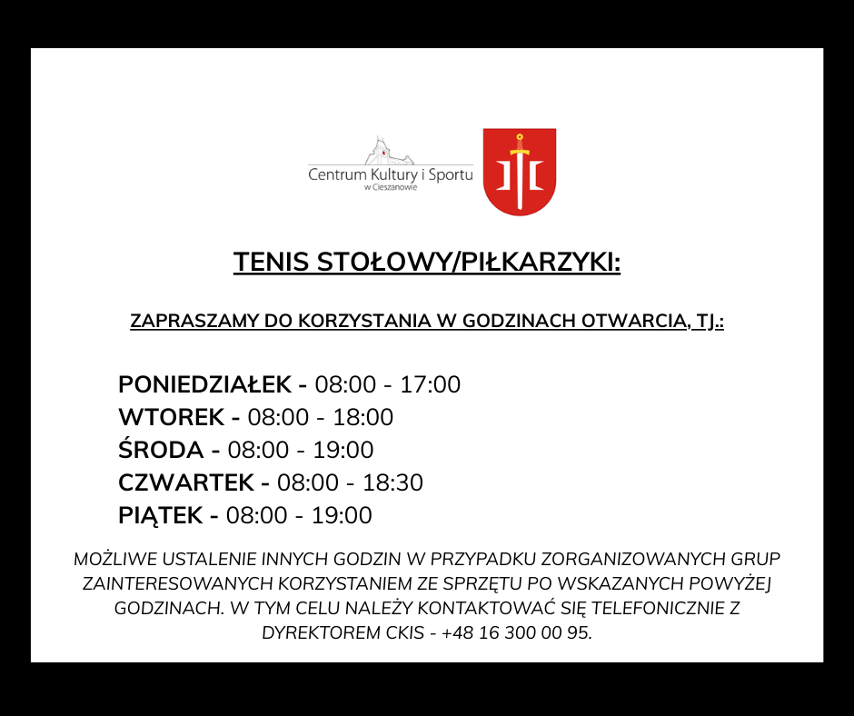GODZINY PRACY CKIS W OKRESIE ZIMOWYM