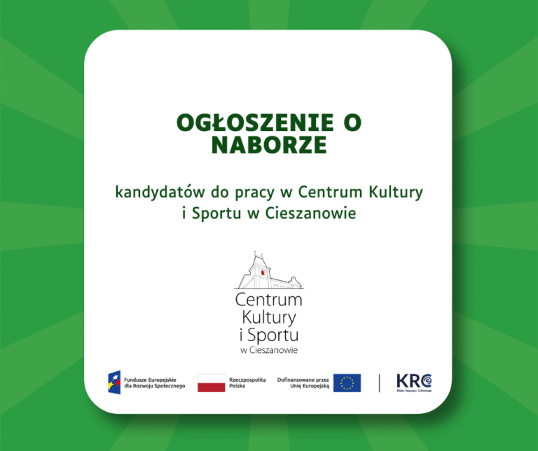 DYREKTOR CENTRUM KULTURY I SPORTU W CIESZANOWIEogłasza nabór kandydatów na wolne stanowiska pracy:Edukator Klubu Rozwoju Cyfrowego w Centrum Kultury i Sportu w Cieszanowie, ul. Kościuszki 4, 37-611 Cieszanów – dwa wolne miejsca pracyWymagania niezbędne:Stan zdrowia pozwalający na zatrudnienie na stanowisku.Pełna zdolność do…