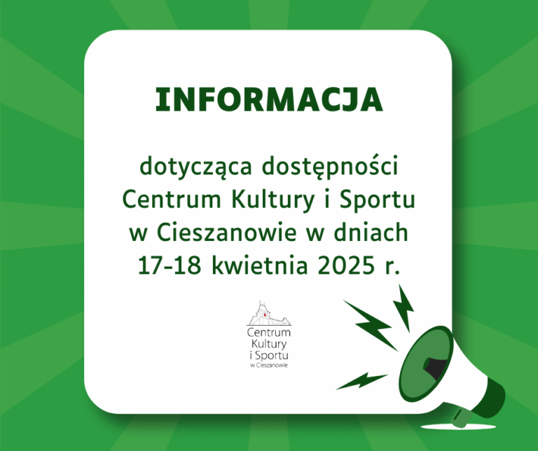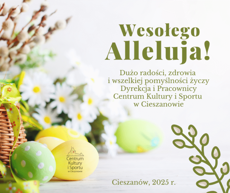 Szanowni Państwo,informujemy, iż dla Sekretariatu/Księgowości CKiS w Cieszanowie dni 17-18 kwietnia 2025 r. są WOLNE OD PRACY. W sprawach bieżących prosimy o kontakt po świętach wielkanocnych. W sprawach niecierpiących zwłoki, we wskazanych dniach prosimy o kontakt wyłącznie telefoniczny z Dyrektorem…