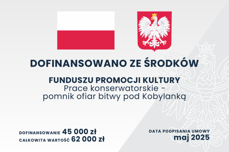 Zadanie „Prace konserwatorskie – Pomnik ofiar bitwy pod Kobylanką” zostało dofinansowane przez Ministerstwo Kultury i Dziedzictwa Narodowego w ramach programu „Miejsca pamięci i trwałe upamiętnienia w kraju – prace remontowe, badawcze, edukacyjne 2025” kwotą 45 000 złotych. Całkowita wartość zadania to…